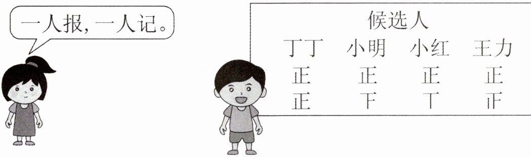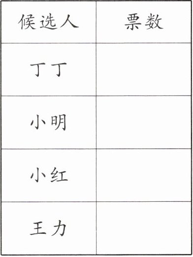 下面是4人竞选班长的得票情况。根据记录的情况,回答下面的问题。