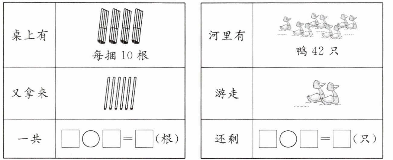 $40 + 6 = 46$(根) $42 - 2 = 40$(只)