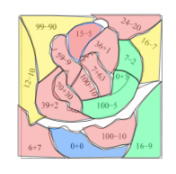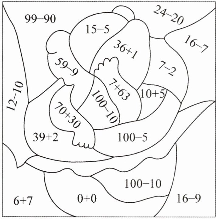 得数是整十数的涂橘红色,得数大于0不满10的涂黄色,得数的个位上是5的涂绿色,得数是0的涂蓝色。