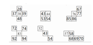 用5个●摆出不同的几个数。