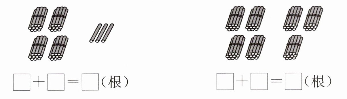 三、$40+3=43$(根) $40+30=70$(根) $20+10=30$(个) $20+30=50$(个)