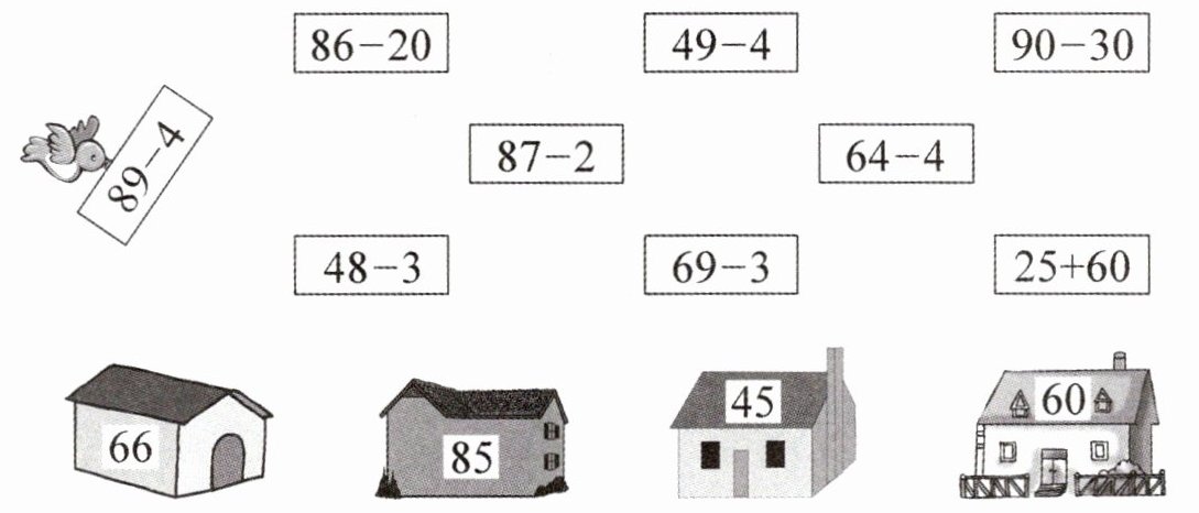 $87 - 2$、$25 + 60$、$89 - 4$ 与 $85$ 相连。