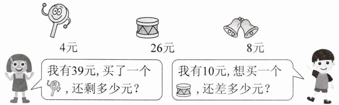 三、$39 - 4 = 35$(元) $26 - 10 = 16$(元)