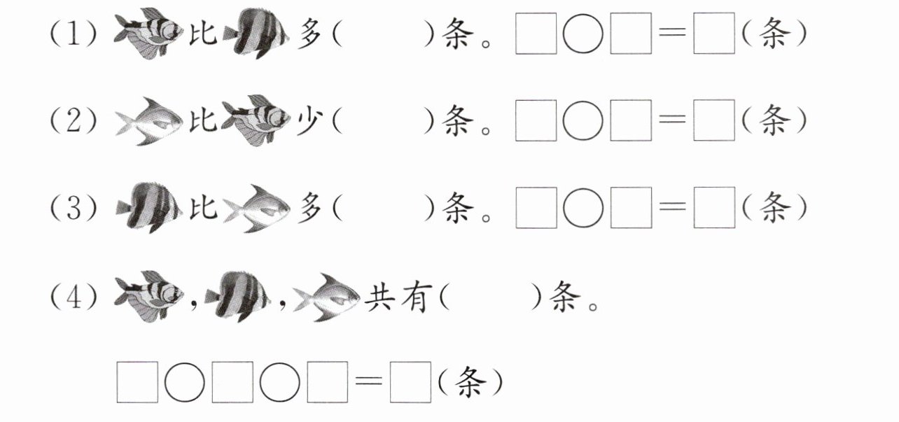 (1)$35 - 30 = 5$(条) (2)$35 - 20 = 15$(条) (3)$30 - 20 = 10$(条) (4)$35 + 30 + 20 = 85$(条)