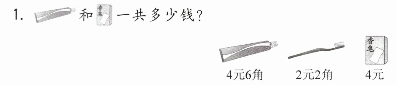 铅笔(1)元(0)角;圆规(4)元(0)角;