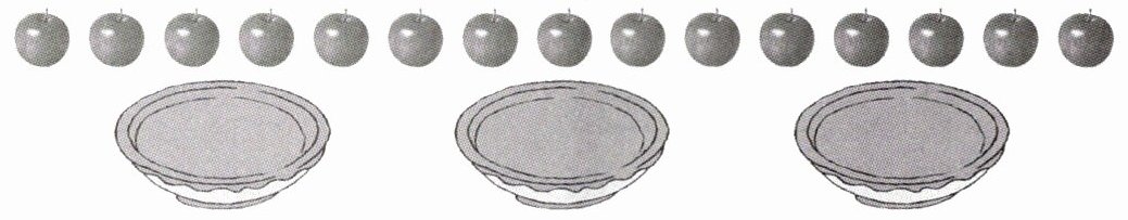 把这些苹果平均放在3个碗里,每个碗里放()个。