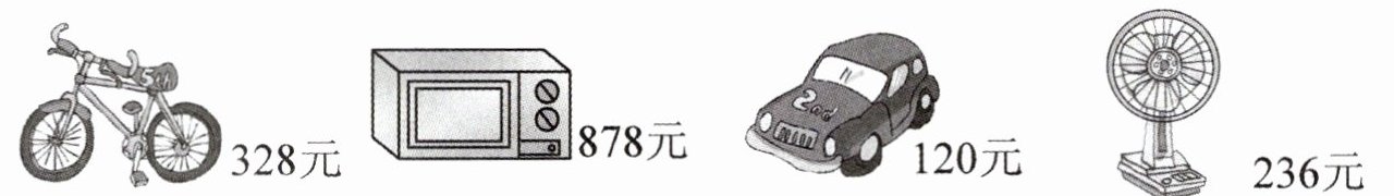 (1)上面的商品中,最贵的是(),最便宜的是(),这两种商品的价格相差()元。