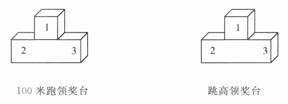 100米跑领奖台:第一名李兵,第二名王林,第三名孙勇;跳高领奖台:第一名张华,第二名李兵,第三名孙勇