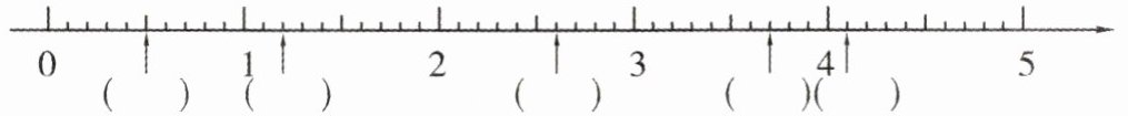 - 第三个箭头在$2$后面第$4$个小格处,所以它所指的小数是$2 + 0.1\times4 = 2.4$。