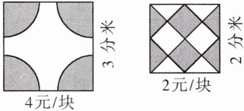 美术教室长9米,宽6米。如果给美术教室铺地砖,你认为选哪一种地砖合算?需要多少钱?