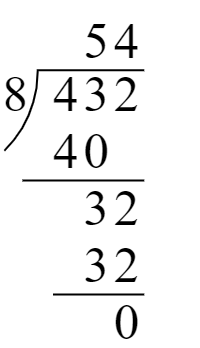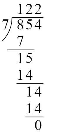 $156\div 3=$ $432\div 8=$ $854\div 7=$