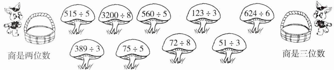 从题目“连一连,采蘑菇喽”推测,可能是将一些除法算式与对应的商或者余数等结果进行连线。由于没有图,无法得知具体内容,但应该是考查对除法运算结果的掌握。
