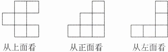 2. 若干个相同的小正方体堆放在一起,下图小明从三个不同方向看到的形状,这堆小正方体共有多少个?