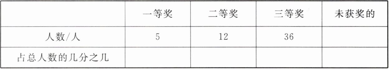 1. 五年级同学中有90人参加了阅读竞赛,获奖情况如下表。请在表内填入合适的最简分数。
