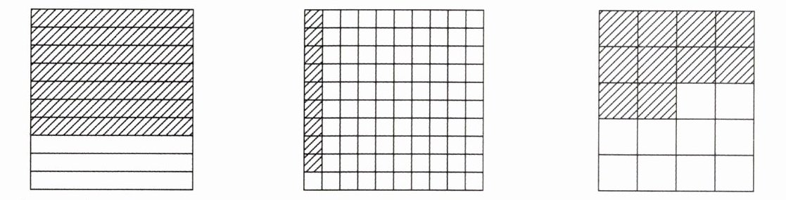 4. 分别用分数和小数表示下面各图中的阴影部分。
