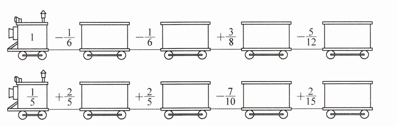 $\frac {3}{5}+1\frac {2}{5}-\frac {7}{8}-\frac {1}{8}$ $\frac {5}{17}-\frac {4}{51}+\frac {2}{3}$ $\frac {5}{9}-(\frac {5}{8}-\frac {4}{9})$