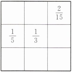 2. 在下图的空格里填上适当的分数,使横行、竖行、斜行上的三个数相加后的和都等于1。