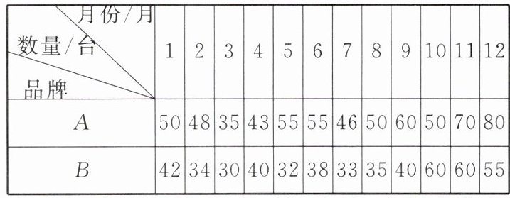 空调专卖店销售A,B两种品牌的空调,某月销售量统计如下表: