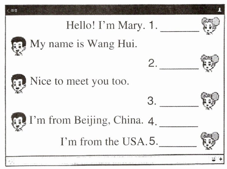 Mary 在微聊上与新同学 Wang Hui 聊天。选择合适的而句子补全对话。