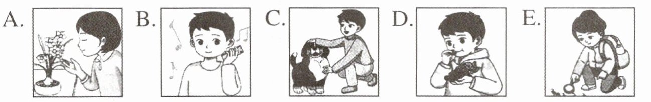 ①see ②bag ③hear ④book ⑤hand ⑥taste