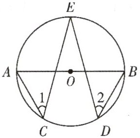 5. 如图,AB是$\odot O$的直径,C,D,E都是$\odot O$上的点.