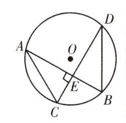 【例题3】如图,在$\odot O$中,两弦AB,CD相交于点E,且AB⊥CD,连接AC,BD,若∠B= 60°,求∠A的度数.