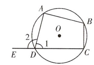 ∵∠ABC + ∠ADC = 180°,∠CDE + ∠ADC = 180°,