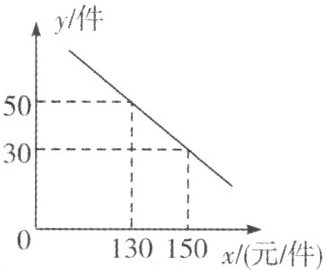 由图象可知$\begin{cases}130k + b = 50,\\150k + b = 30,\end{cases}$