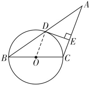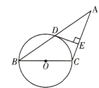 【变式2】如图,在 $ \triangle ABC $ 中,$ AC = BC $,以 $ BC $ 为直径的 $ \odot O $ 与底边 $ AB $ 交于点 $ D $,过点 $ D $ 作 $ DE \perp AC $,垂足为 $ E $. 求证:$ DE $ 为 $ \odot O $ 的切线.