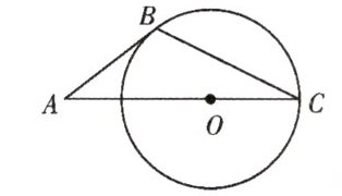 【例题2】如图,$ A $ 是 $ \odot O $ 外一点,$ B $ 为 $ \odot O $ 上一点,$ AO $ 的延长线交 $ \odot O $ 于点 $ C $,$ \angle C = 25^\circ $,$ \angle A = 40^\circ $,求证:直线 $ AB $ 为 $ \odot O $ 的切线.
