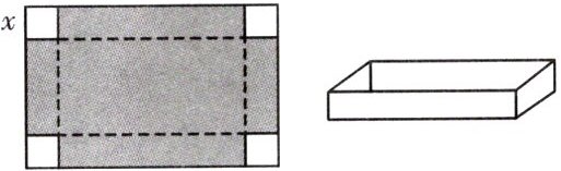 4. 如图是一张长12dm,宽6dm的长方形纸板,将纸板四个角各剪去一个同样的边长为$x$dm的正方形,然后将四周突出部分折起,可制成一个无盖的长方体纸盒.
