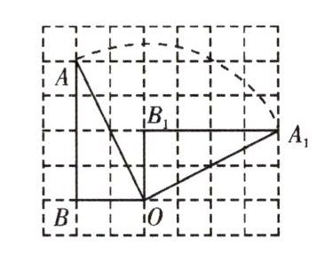【变式3】如图,在小正方形的边长都为$1$的方格纸中,$\triangle ABO$的顶点都在小正方形的顶点上,将$\triangle ABO绕点O顺时针方向旋转90^{\circ}得到\triangle A_{1}B_{1}O$,求点$A$运动的路径长.