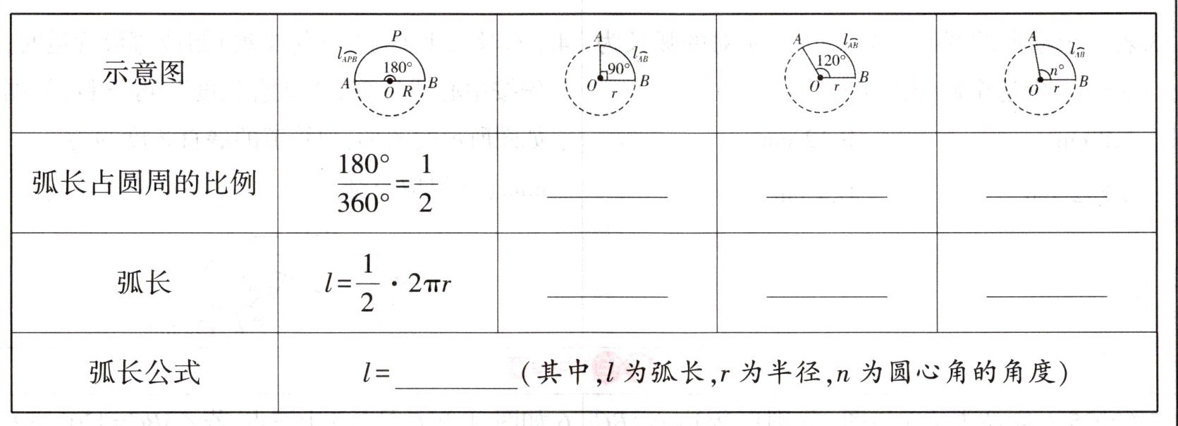 【变式1】(人教九上P115教材改编)已知圆弧的半径为$9cm$,圆心角为$90^{\circ}$,求弧长.
