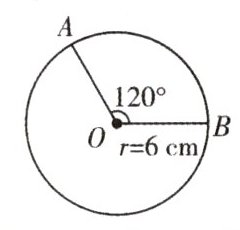 解:$l = \frac{n \pi r}{180} = \frac{120 × \pi × 6}{180} = $