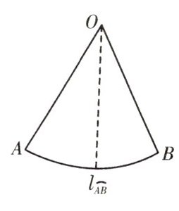 ,$ ∴ S_{扇} = \frac{1}{2} l_{\overset{\frown}{AB}} r $.