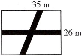 32.在一块长为35 m,宽为26 m的矩形绿地上有宽度相同的两条路,如图所示,其中绿地面积为$850m^{2}$,求小路的宽.