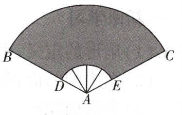 2. (人教九上P116教材改编) 如图,扇形折扇完全打开后,如果张开的角度($ ∠BAC $)为$ 120^{\circ} $,骨柄AB的长为40cm,扇面的宽度BD的长为20cm,那么这把折扇的扇面面积为____
