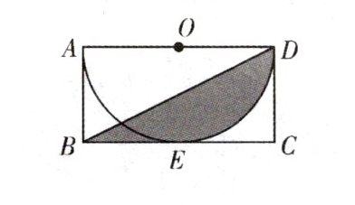 1. 如图,在矩形 $ABCD$ 中,$BC = 4$,$CD = 2$,以 $AD$ 为直径的半圆 $O$ 与 $BC$ 相切于点 $E$,连接 $BD$,则阴影部分的面积为____(结果保留 $\pi$)。
