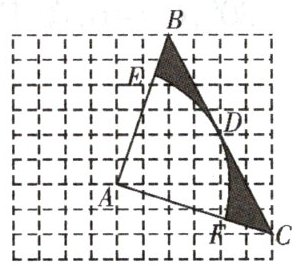 4. 在如图所示的网格中,每个小正方形的边长为 $1$,每个小正方形的顶点叫格点,$\triangle ABC$ 的三个顶点均在格点上,以点 $A$ 为圆心的 $\overset{\frown}{EF}$ 与 $BC$ 相切于点 $D$,分别交 $AB$,$AC$ 于点 $E$,$F$。