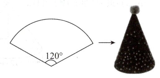 3. (2024·惠州期末)综合实践课上,珍珍用半径 $ 9 \mathrm { cm } $,圆心角为 $ 120 ^ { \circ } $ 的扇形纸板,制作了一个圆锥形的生日帽。如图所示,在不考虑接缝的情况下,这个圆锥形生日帽的底面半径是(