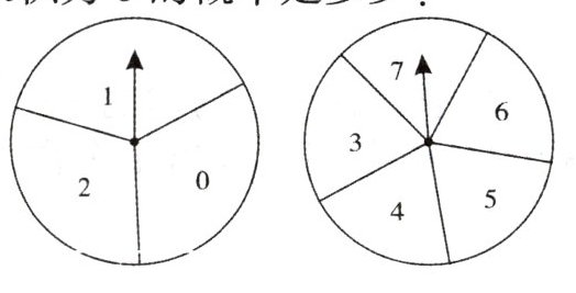 【变式2】如图,同时转动两个转盘,转盘被分别分为3个和5个大小相同的扇形,转盘停止时(若指针恰好停在分割线上,那么重转一次,直到指针转向某一区域为止),两个指针所指区域的数字乘积为0的概率是多少?