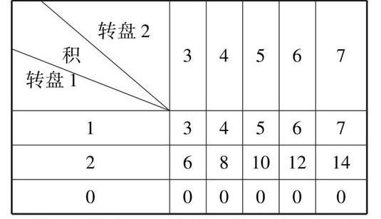 由表可知共有15种结果,其中乘积为0的有5种,因此两个指针所指区域数字乘积为0的概率为$\frac{5}{15}=\frac{1}{3}$.