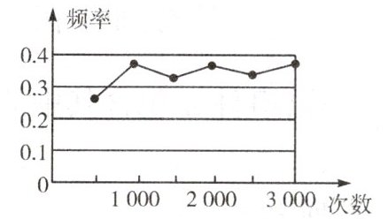 3. 如图显示了用计算机模拟随机投掷一枚图钉的某次试验的结果。