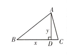 【例题3】如图,$\triangle ABC的面积为15\mathrm{cm}^2$,它的一边长为$x\mathrm{cm}$,且此边上的高为$y\mathrm{cm}$。