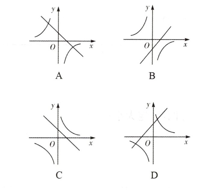 【例题3】(2024·源域期末)在同一平面直角坐标系中,一次函数$y= kx - k与反比例函数y= \frac {k}{x}(k≠0)$的图象大致是(