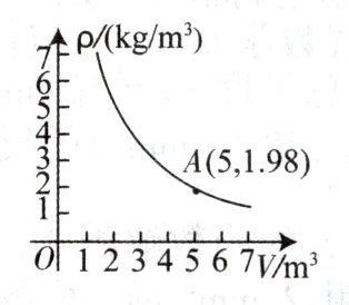 7.(人教九下P16)密闭容器内有一定质量的二氧化碳,当容器的体积$V$(单位:$m^{3}$)变化时,气体的密度$ρ$(单位:$kg/m^{3}$)随之变化.已知密度$ρ与体积V$是反比例函数关系,它的图象如图所示.
