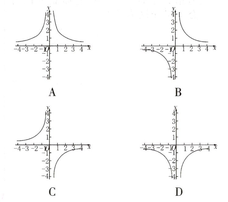 5.(人教九下P21)把下列函数的解析式与其图象对应起来:①$y= \frac {2}{x}$,②$y= \frac {2}{|x|}$,③$y= -\frac {2}{x}$,④$y$$=-\frac {2}{|x|}$的图象依次是