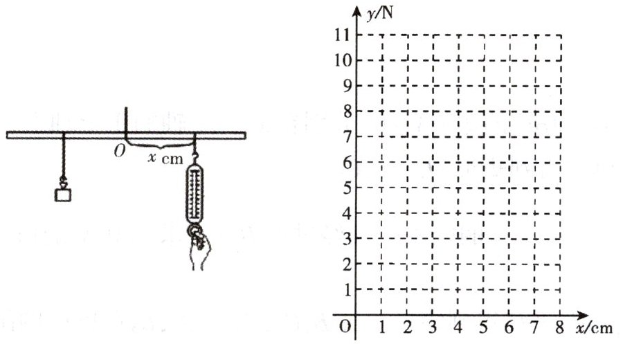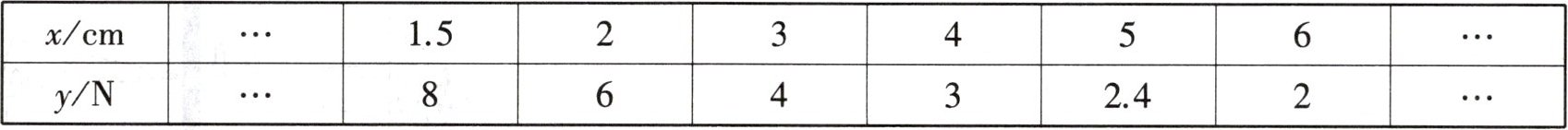 操作:某数学小组在"探究杠杆平衡条件"实验中,固定阻力和阻力臂,得到了下表中的动力$y$(N)与动力臂$x$(cm)的几组对应值.根据学习函数的经验,他们对动力$y$(N)与动力臂$x$(cm)之间的函数关系进行了探究.