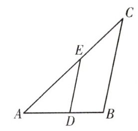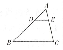 2. 如图,$ \triangle ADE \backsim \triangle ABC $,若 $ AD = 1 $,$ BD = 2 $,则 $ \triangle ADE $ 与 $ \triangle ABC $ 的相似比是(