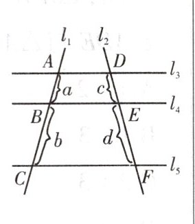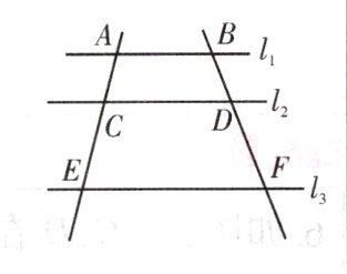 ∵ $ l _ { 3 } // l _ { 4 } // l _ { 5 } $,